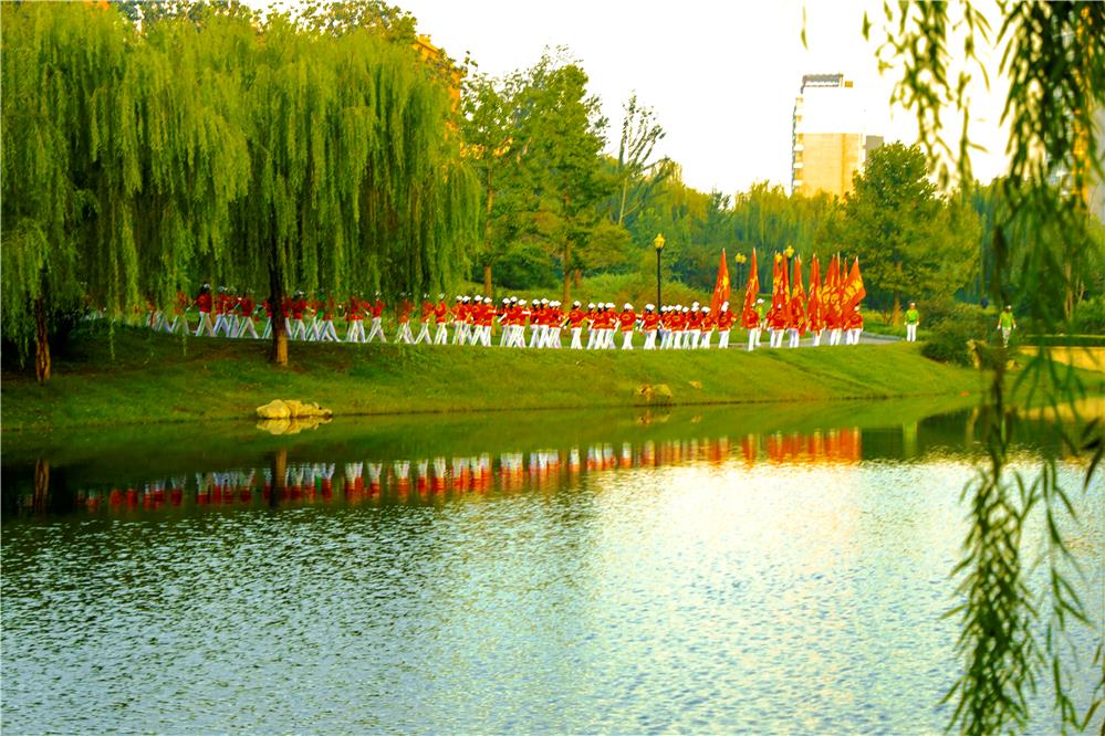 早早地起床,赶得上这样庞大、整齐的锻炼队伍——健走队,加入进去,走个几公里,身心俱爽,真是幸福。