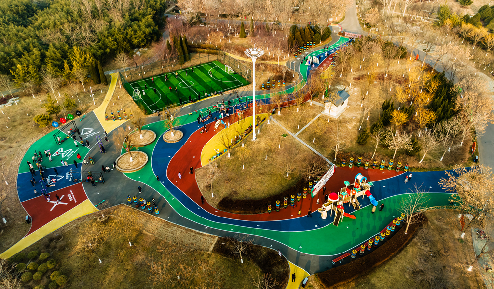 兔年的大年初一,天气晴朗,室外温度适宜人们外出活动。在东营市垦利区植物园内的儿童乐园聚集了不少的市民,有的带孩子玩滑梯、打秋千、坐跷跷板等,玩得不亦乐乎。足球场内青少年踢起了足球。他们在各自喜爱的运动器械上玩的开心快乐,为节日增添了运动十足的年味。