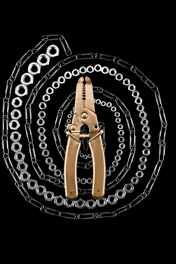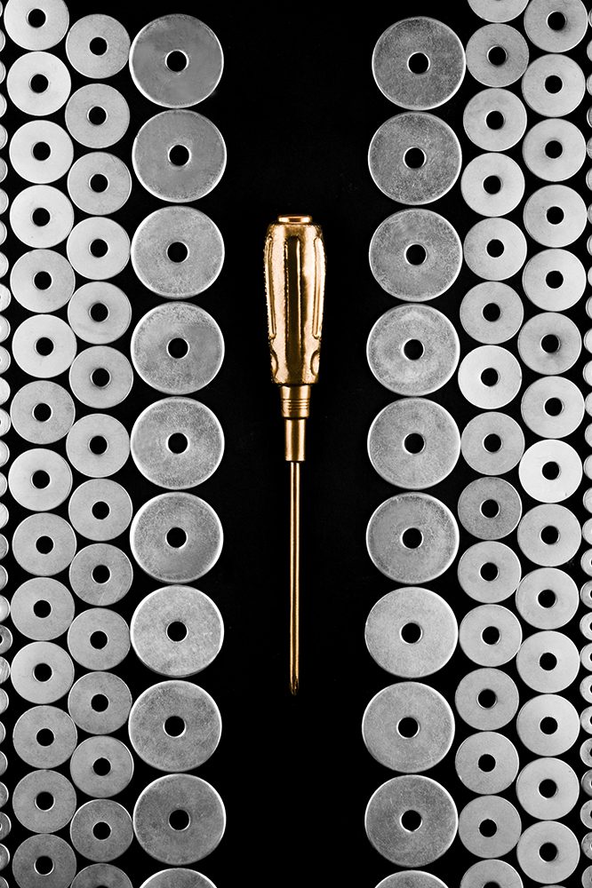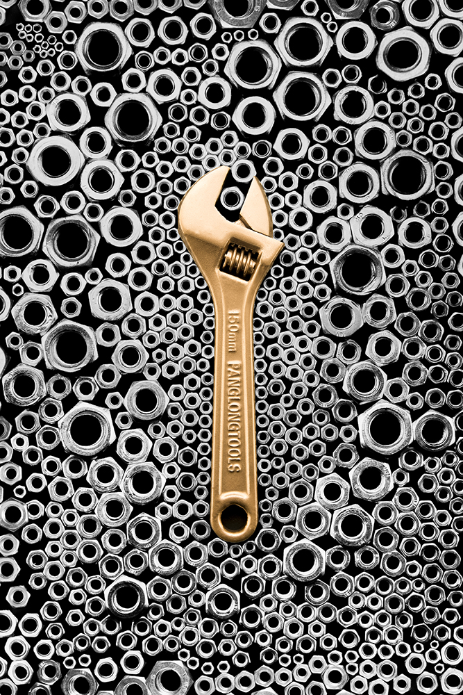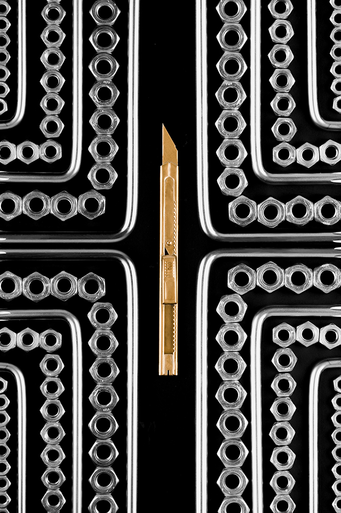 作品旨在反映当前商业摄影的审美价值,探索当前消费文化对于商业摄影的影响,在符合人们的审美需求的前提下,使商业摄影发挥最大的审美作用。该系列作品以日常生活中常见的机械工具为主体,运用形式美法则进行构图,使画面更富有变化与统一、对比与和谐的视觉感受。利用消色对比的手法产生强烈的视觉冲击效果,使得系列作品符合当前审美价值,起到刺激消费者购买欲望的作用。