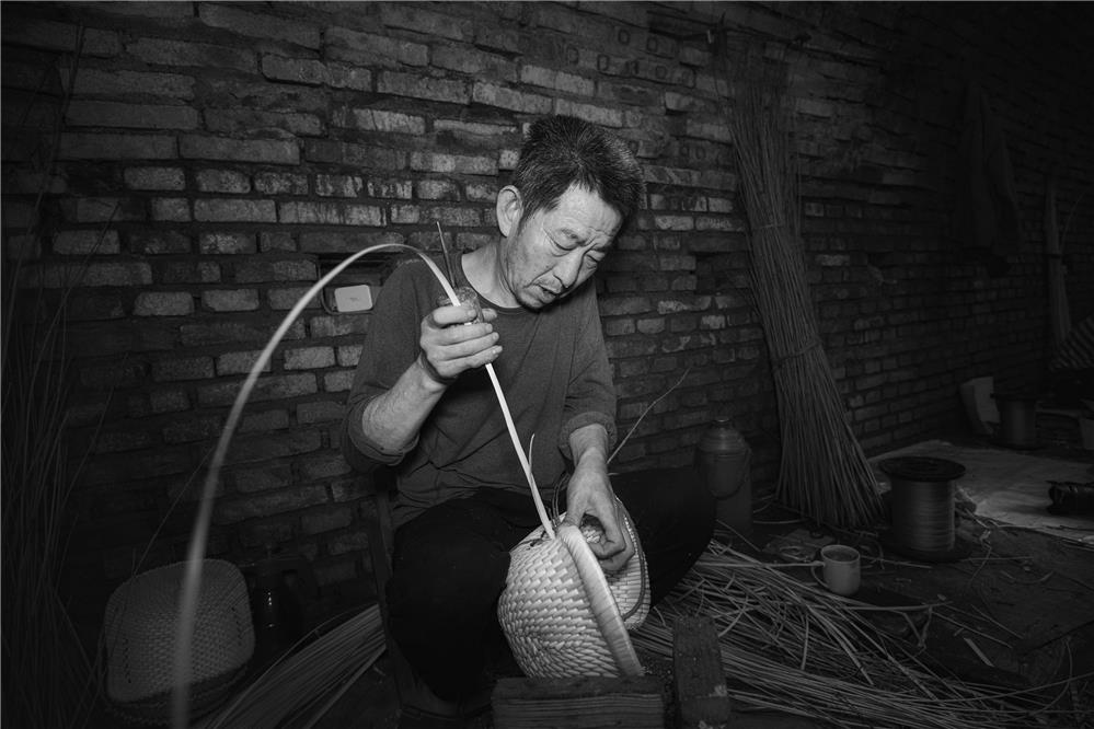 高密柳编是省级非遗项目,2022年5月19日,在山东省高密市曹疃村,地窖里温度在30度左右,柳编艺人禚照乾的脸上汗珠滚落。