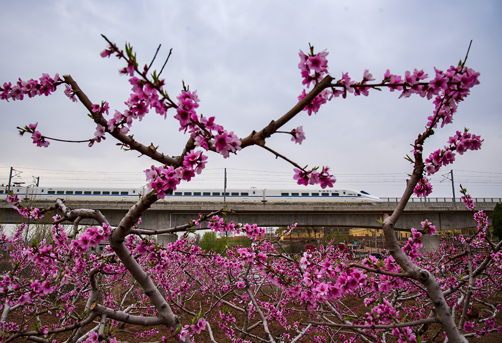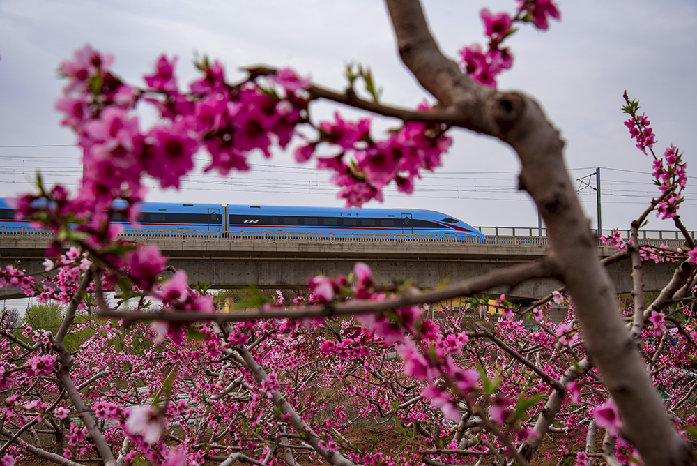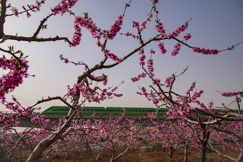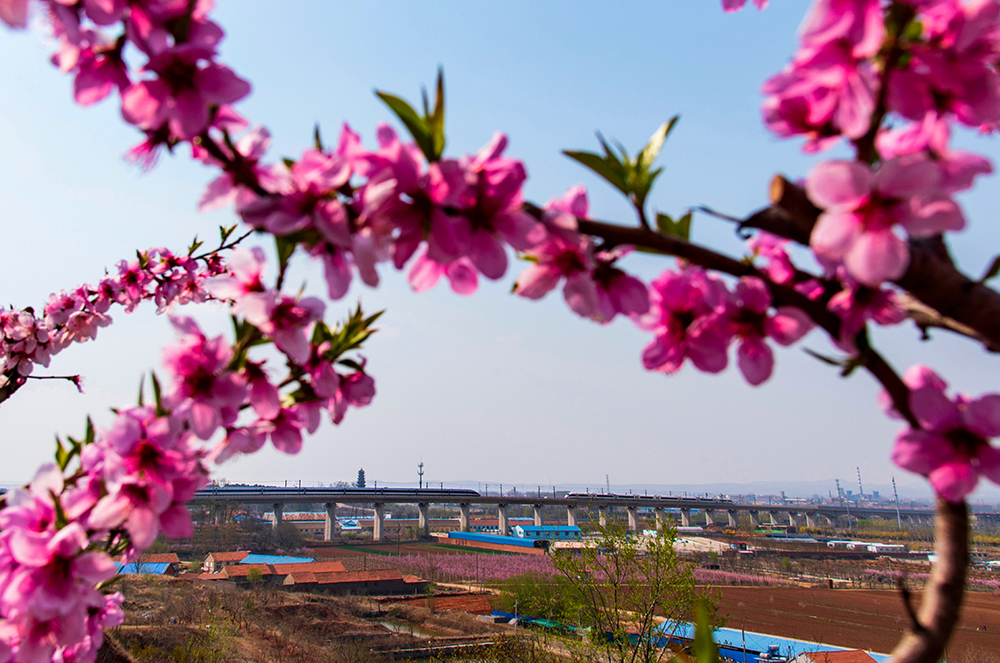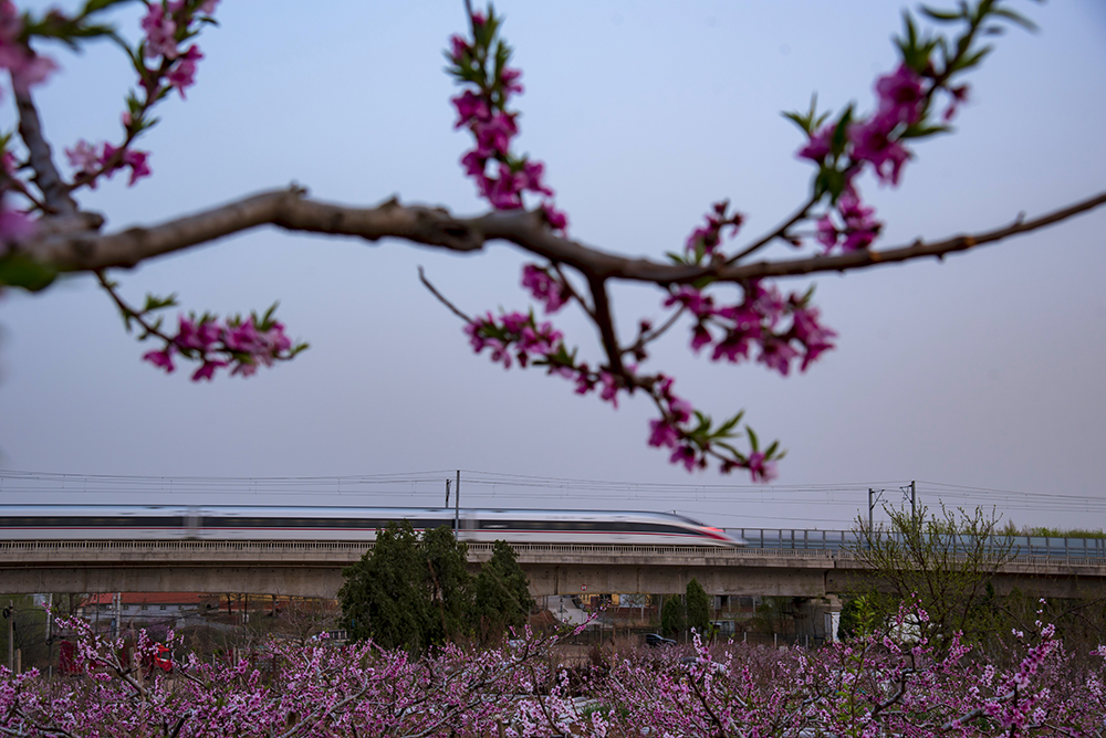 拍摄于莱阳。在春花烂漫的季节里,两列动车在青烟威荣城际铁路莱阳段内迎面奔驰,我们的祖国正乘着开往春天的列车飞速发展,祖国的明天会更好。