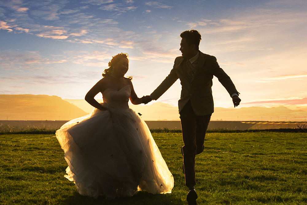 这是新人在拍结婚照。